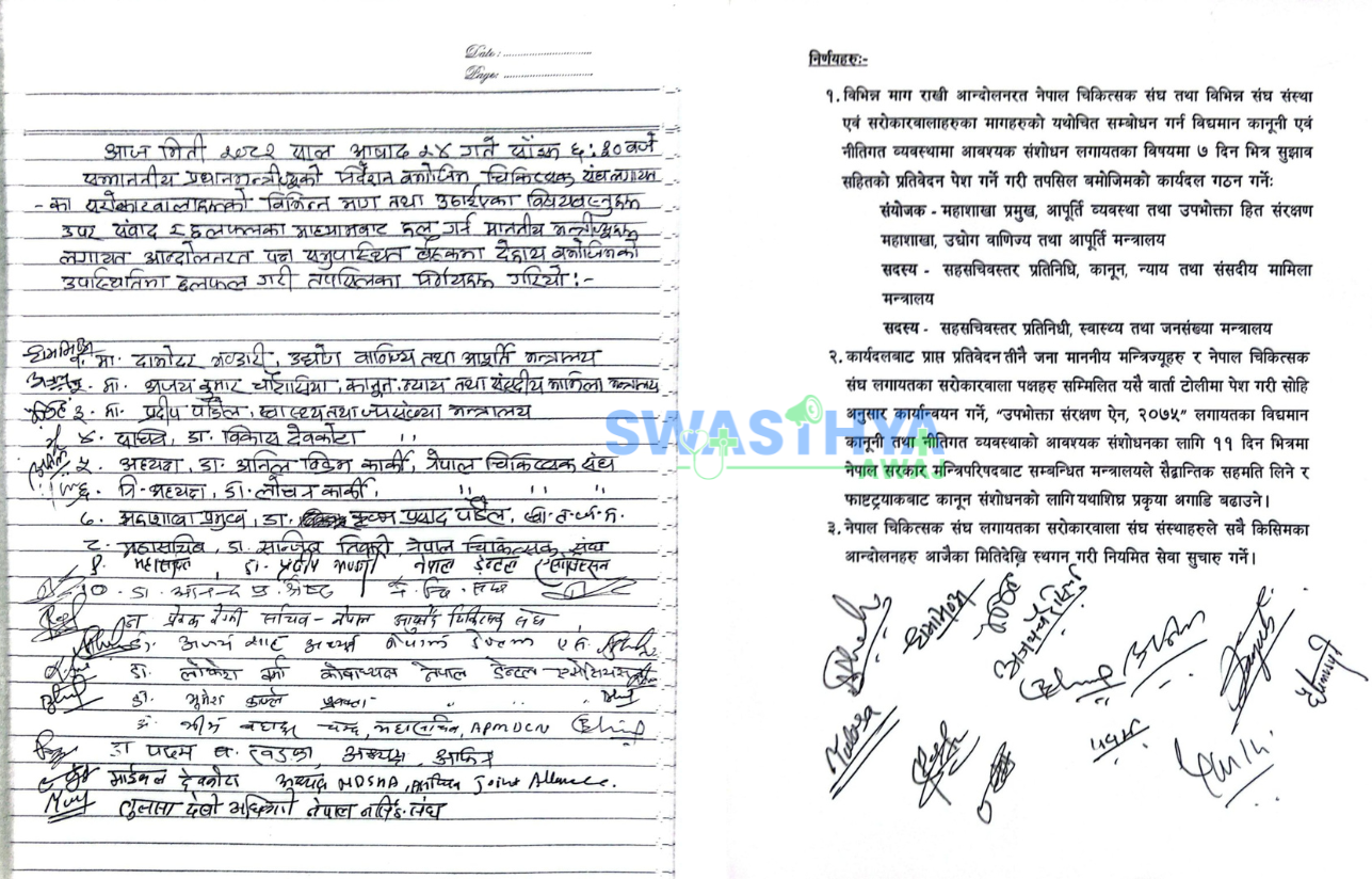 “हामी वार्ताबाट प्राप्त आश्वासनप्रति सकारात्मक छौं। अबको दिनमा कानुनी संशोधनमार्फत चिकित्सा सेवा सुरक्षित बनाउने दिशामा अघि बढ्नेछौं,” उनले भने।
